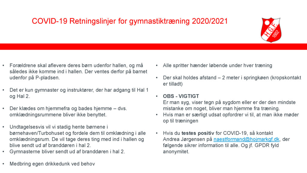 Så har du lyst til at dyrke idræt, være en del af fællesskabet, så klik på menuen ovenfor til at klikke dig rundt, se og lære mere om hvad vi kan tilbyde, eller vælg den idrætsgren og det hold du gerne vil på. Vi håber på, at vi kan opfylde dine behov. Alle trænere og ledere i Højmark Gymnastikforening har udfyldt eller skal udfylde en børneattest.